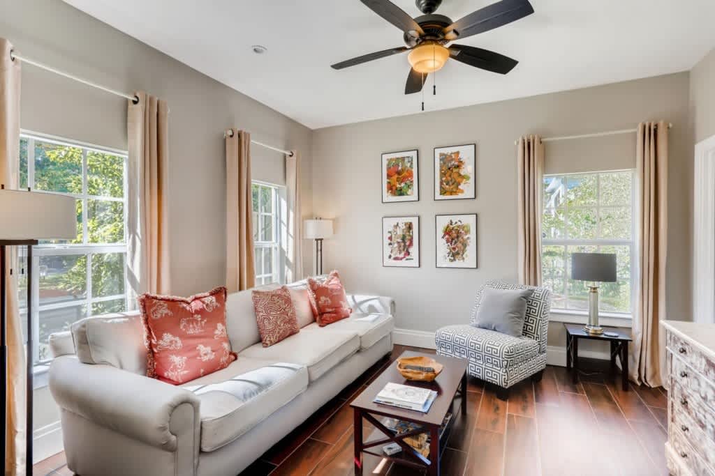 Newly constructed Grandview Heights Vacation Home, Buttercup, is located at the highest point in the peaceful Grandview Heights Historic District, which is within the West Palm Beach Arts & Entertainment District immediately adjacent to downtown West Palm Beach. This luxuriously furnished, fully equipped vacation rental features 3 bedrooms, 3 baths, kitchen, laundry room and a charming front porch for relaxing.