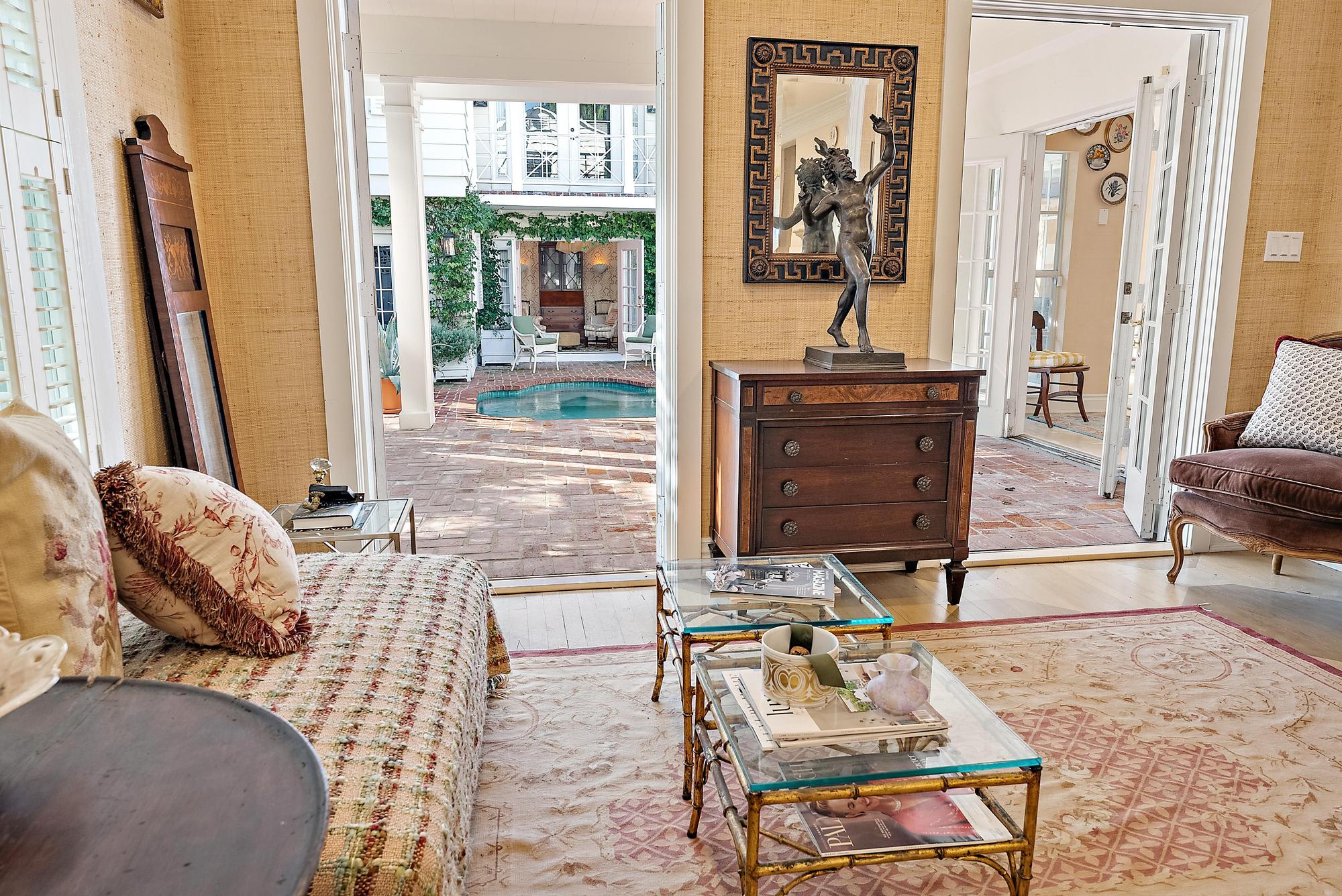 Inside the main house, the bright living area centers around a plush sectional and streaming-ready smart TV. A modern, fully stocked kitchen opens to the dining space and pool deck for effortless entertaining. Each bedroom is styled with relaxed ease, and the shared baths offer both soaking tubs and walk-in showers between the two structures.