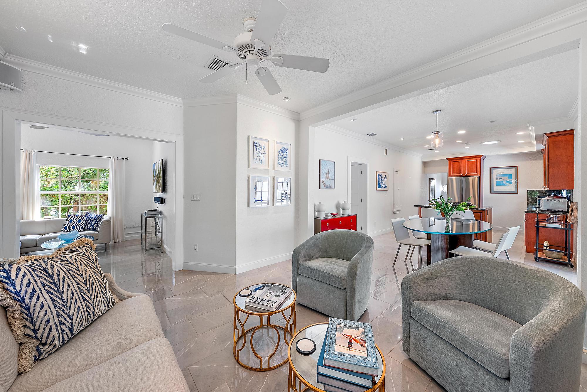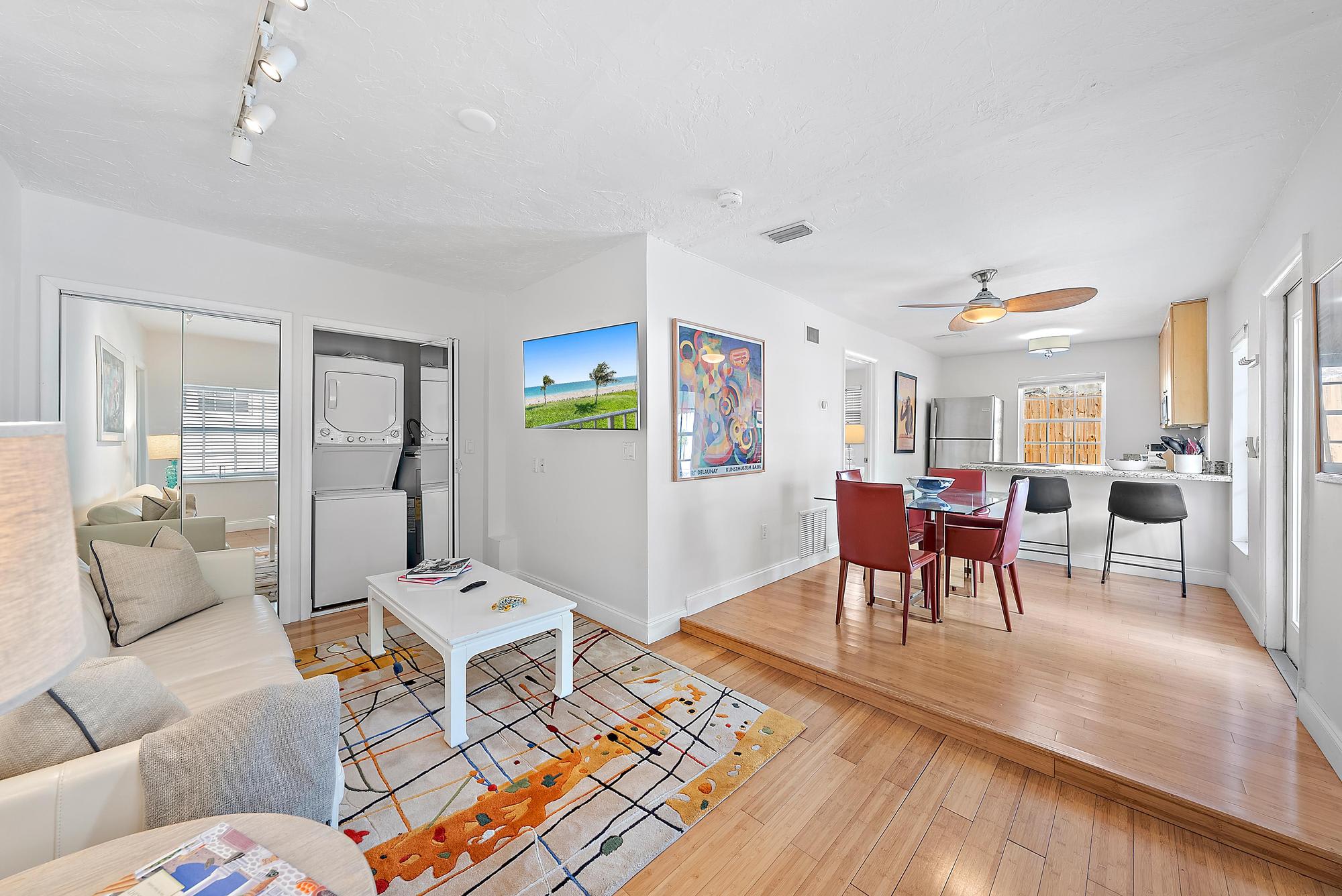Tucked into the heart of Flamingo Park, The White Flamingo blends historic character with relaxed tropical luxury. This stylish, updated 3BR/3BA retreat features a 2-bedroom main house and a separate cabana apartment – making it perfect for families, groups, or guests seeking a bit of extra privacy.